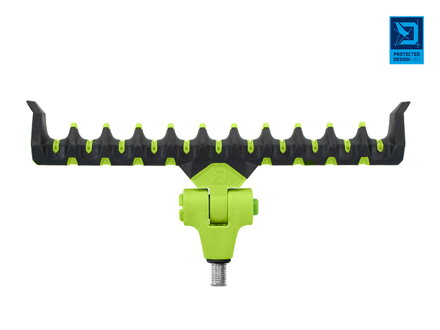 Prémiový feedrový držiak vysokej kvality vo farbách inovatívnej feederovej série Delphin Reaxe. Ako už názov napovedá, model Flexi je plne naklápateľný pomocou jednoduchého stláčacieho mechanizmu, ktorým umožňuje prispôsobiť sa rôznemu sklonu prúta, napríklad počas lovu na rieke, vo vetre, alebo z nerovného terénu. Vďaka dostatočnej šírke umožňuje upraviť polohu prúta po nahodení a tak docieliť optimálny ohyb špičky bez potreby nadmerného navíjania vlasca späť na cievku navijaka. Držiak je vyrobený z odolných materiálov, takže sa ľahko nepoškodí a nepoškriabe. Jeho špeciálne navrhnutý tvar poskytuje dokonalú podporu prúta a zabráni jeho vyšmyknutiu aj pri razantných záberoch. Povrch držiaka je potiahnutý pogumovaným materiálom, ktorý je extra šetrný k povrchu prúta a chráni ho pred poškodením. Univerzálny závit umožňuje uchytenie na všetky štandardné ramená, stojany a rázsošky. Na závitovej časti sa nachádza gumená podložka, ktorá zamedzuje otáčaniu držiaka. Držiak Flexi je možné použiť aj na lov s dvomi prútmi.